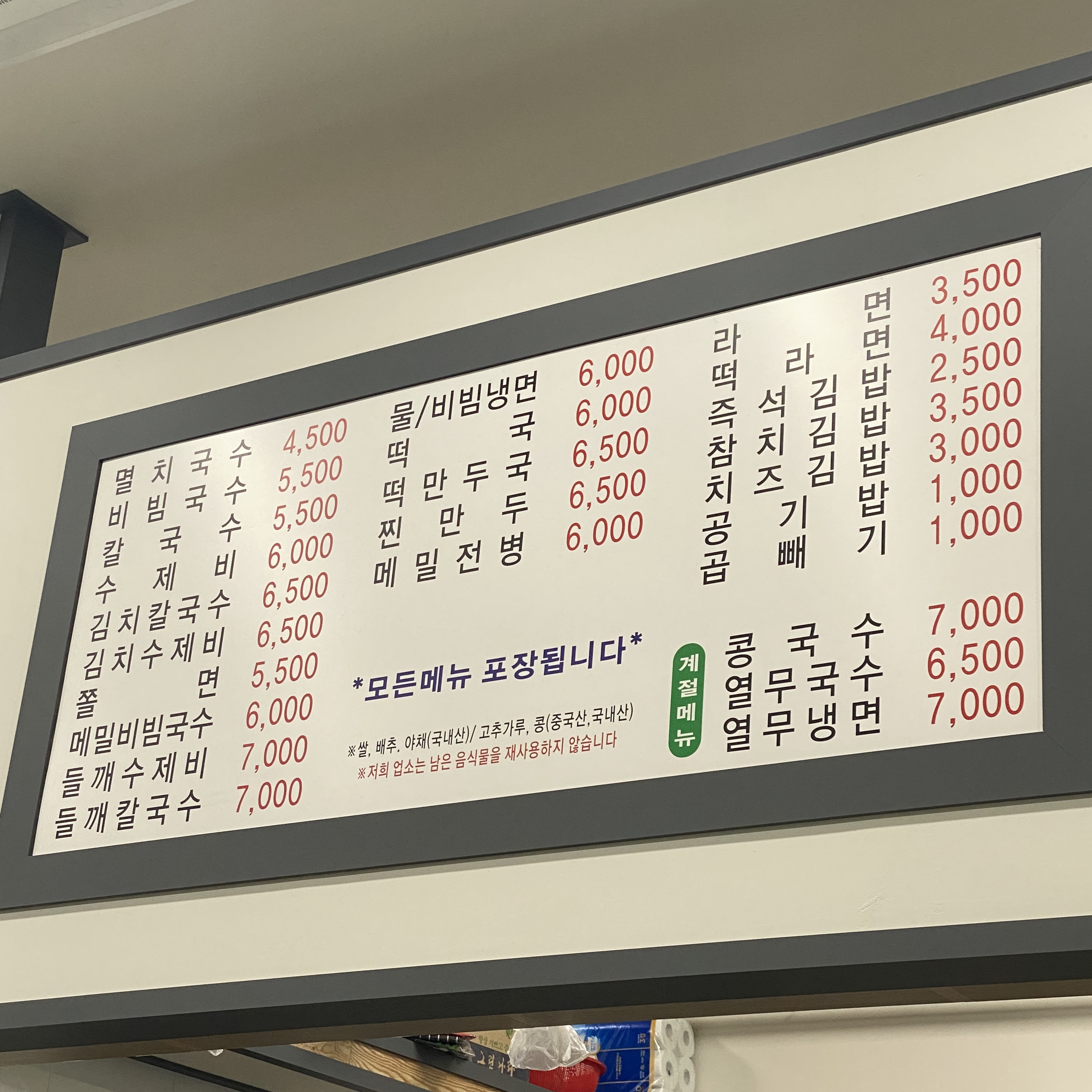 나는 아까도 말했듯 멸치국수를 매우 좋아하기 때문에 멸치국수 곱배기, 아니 곱빼기와 즉석김밥을 주문했다.