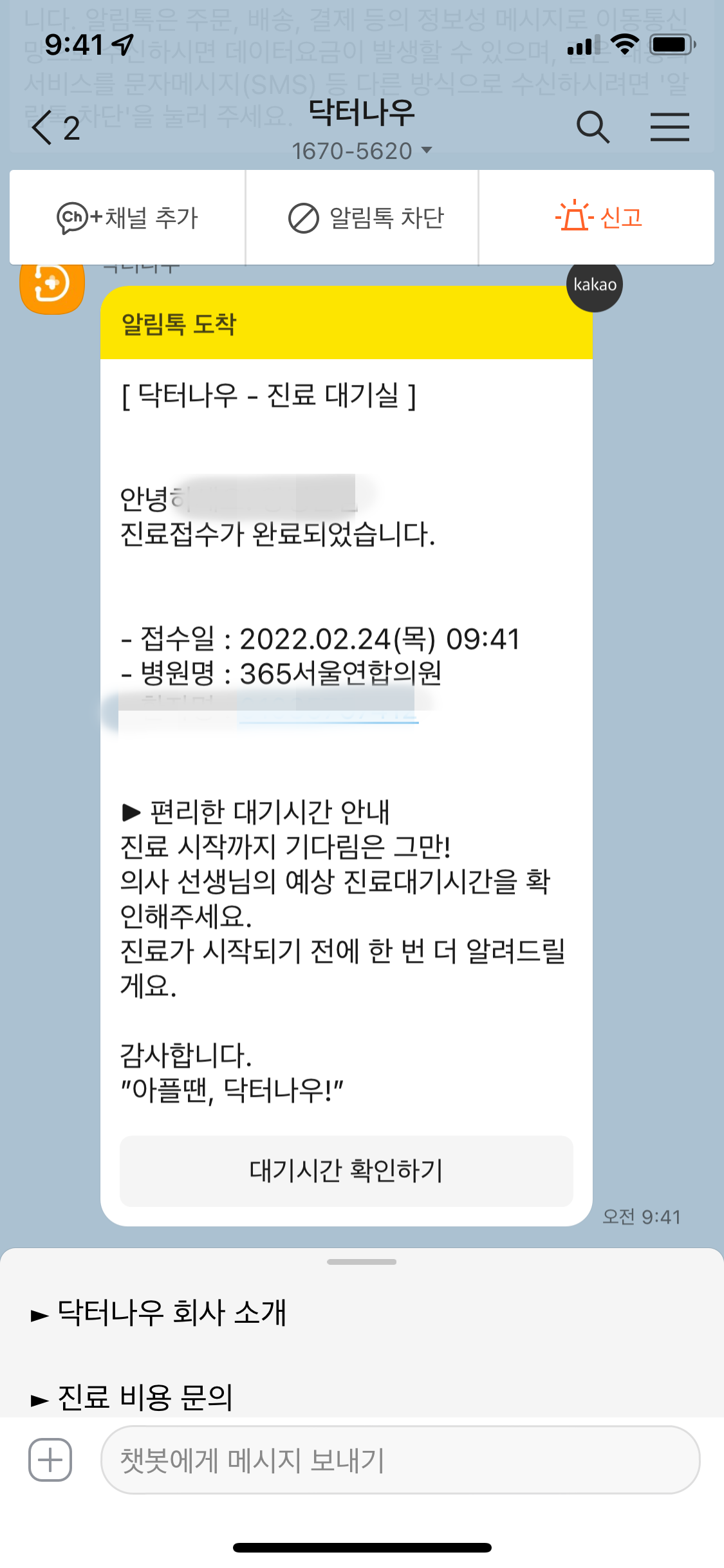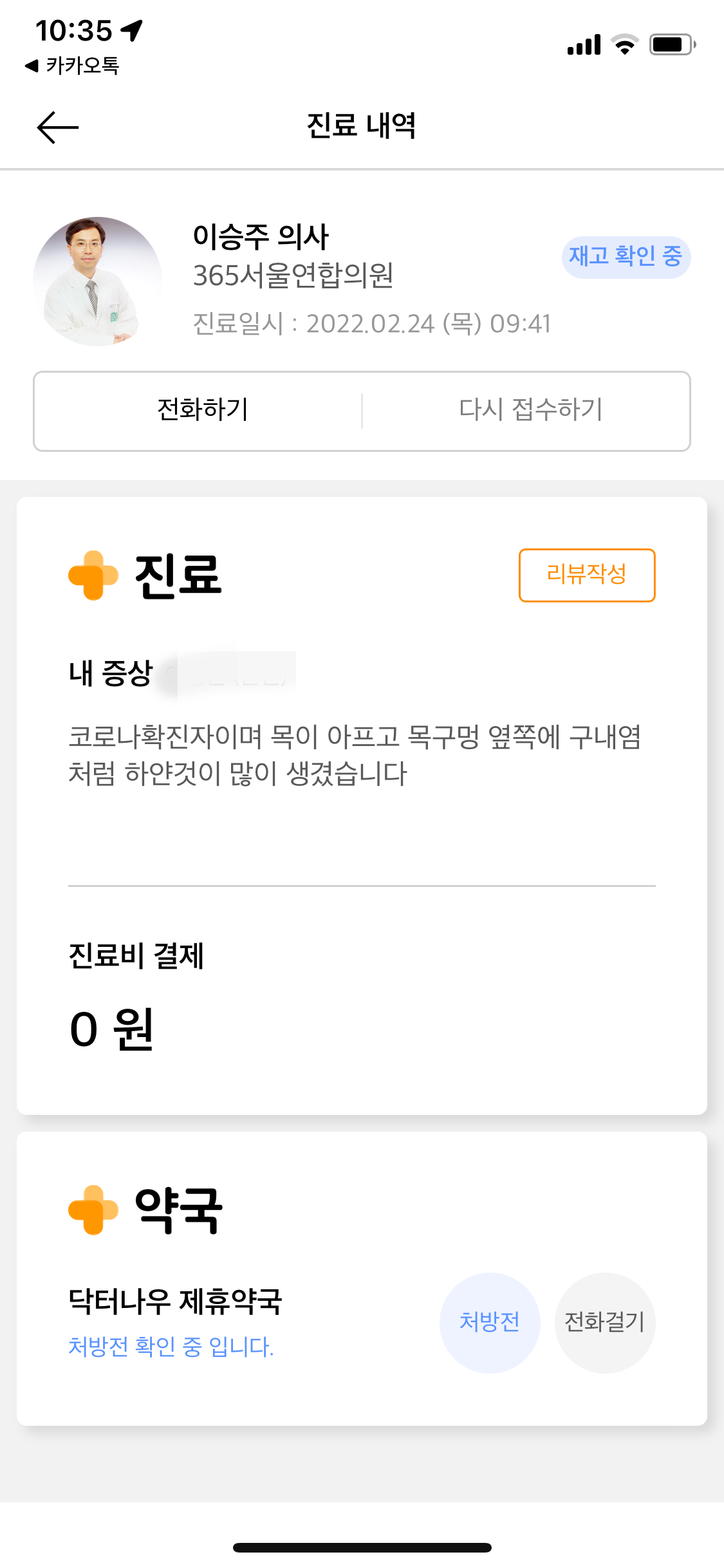 9시40분에 접수를 하고, 통화 진료까지 약 1시간 가량 소요된것 같다.