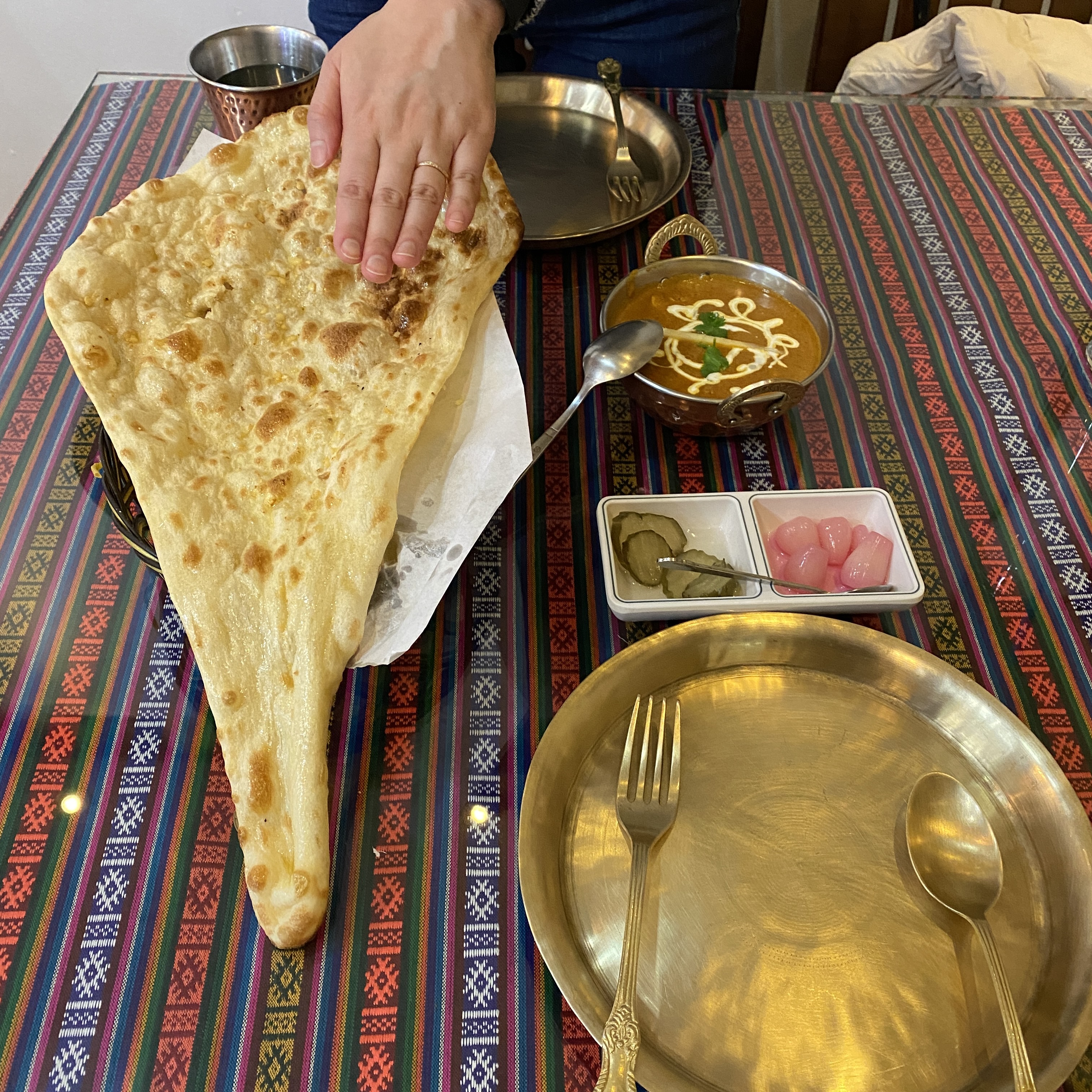 갈릭난과 치킨커리를 먼저 주셨는데 난이 진짜 너무 크다 ㅋㅋ 아내와 나는 난의 크기를 보고 빵 터졌다.