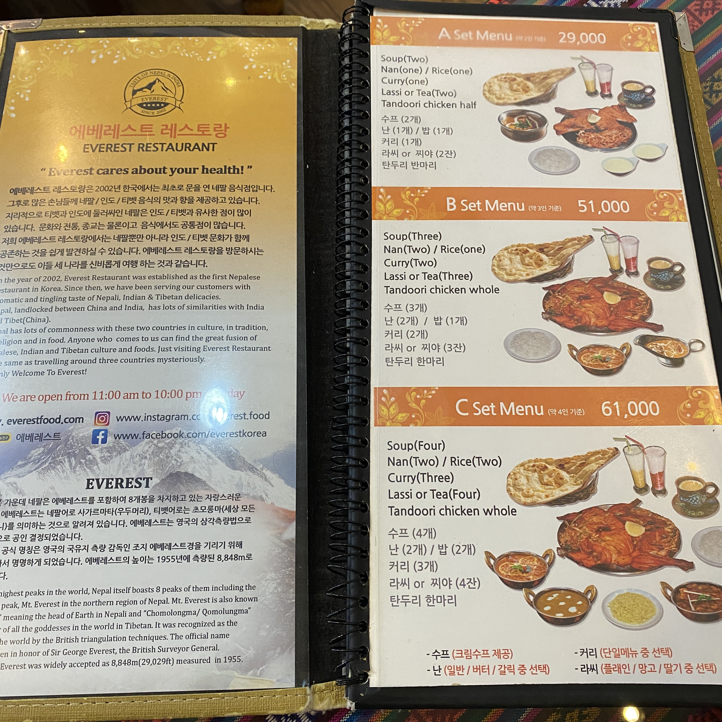 맛있는 음식점을 찾다가, 뭔가 이색적인 음식을 먹고 싶었는데 친구의 추천으로 알게된 에베레스트 레스토랑에 방문했다.
