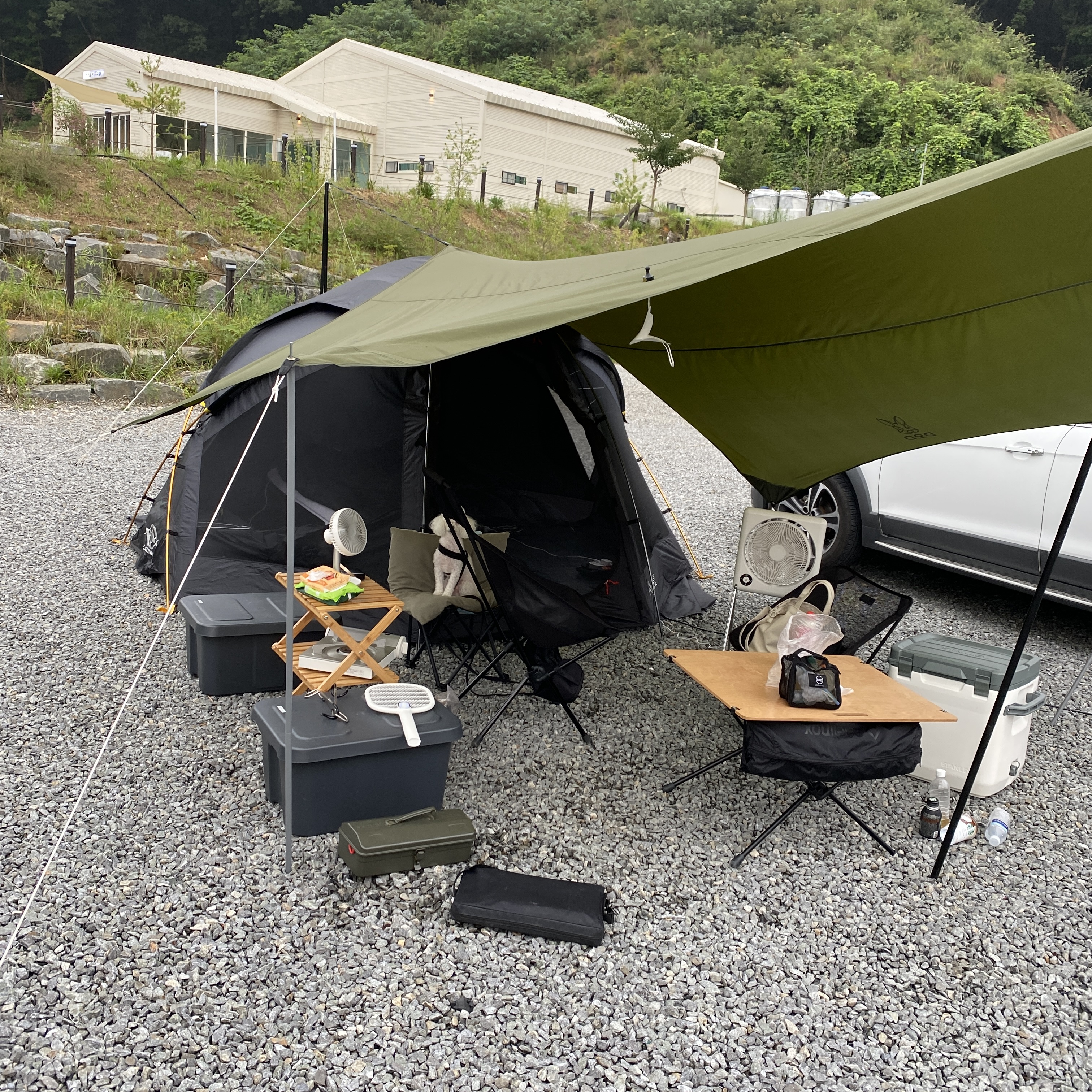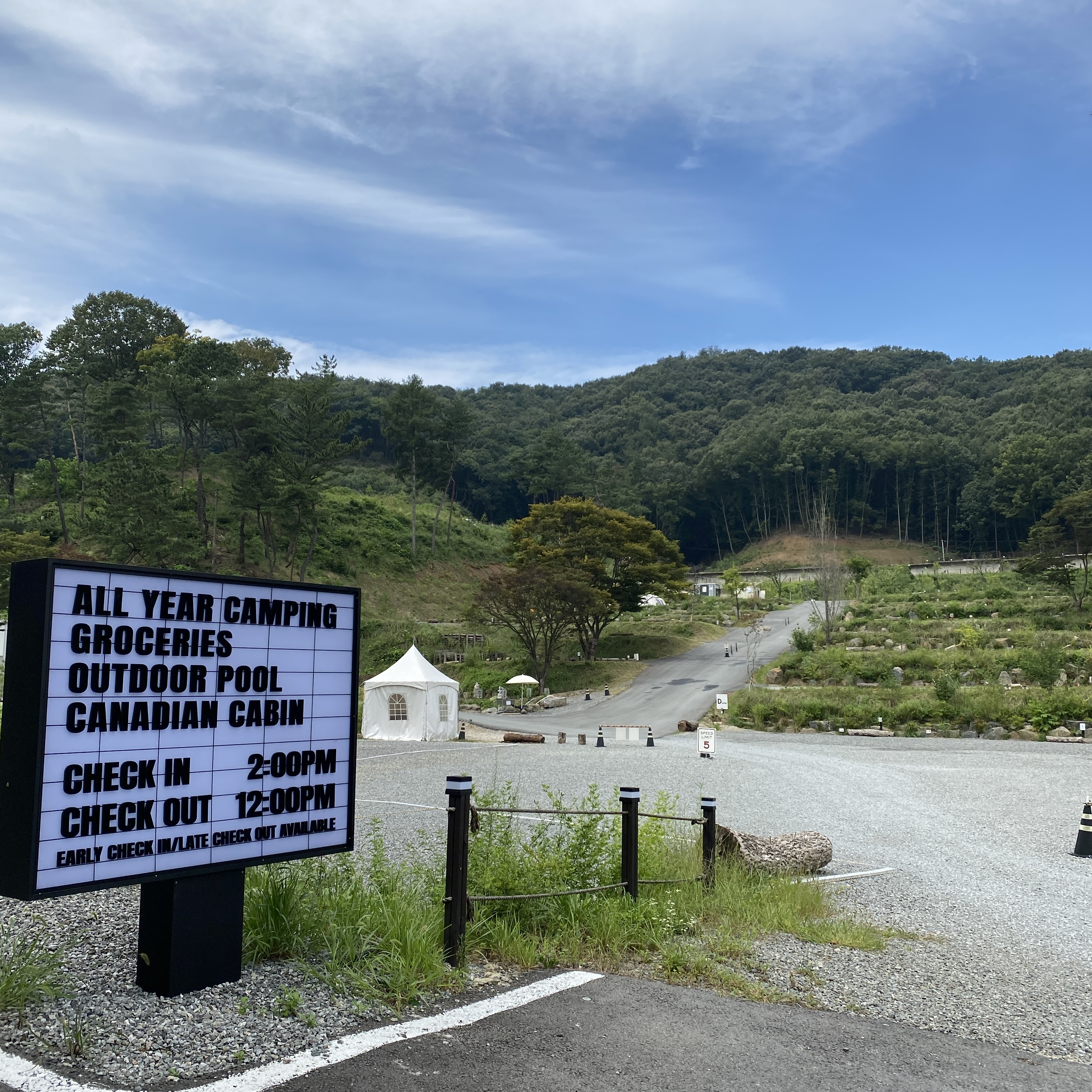 어차피 강아지와 함께 다니는 여행이라 수영장에 들어가긴 힘들고.. 마침 성수기가 끝난 주중이라 캠핑장비용이 1박에 7만원으로 보다 현실감있게 내려왔다. 이럴 때 아니면 언제 가보나 하는 생각에 결정한 진천 더빌리지캠핑장